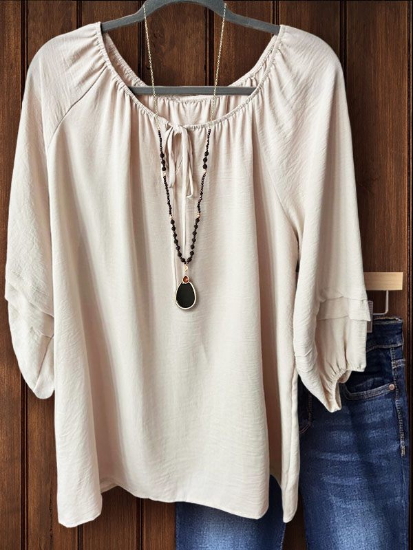 Elevate your everyday look with this soft apricot tie top. The chic tie detail adds a touch of elegance to the flowy, casual silhouette. This top features premium breathable fabric and raglan sleeves for added comfort. Perfect for adding a touch of femininity to your everyday style.