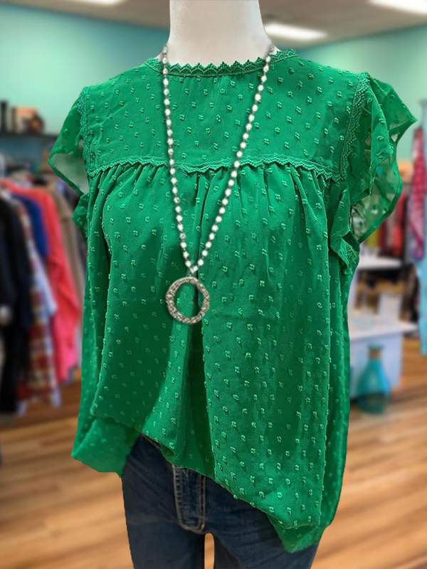 The Polka Dot Jacquard Patchwork Ruffle Top is a classic piece that features a patchwork fabric with polka dots and ruffles. It’s perfect for any occasion and can be dressed up or down depending on your preference.