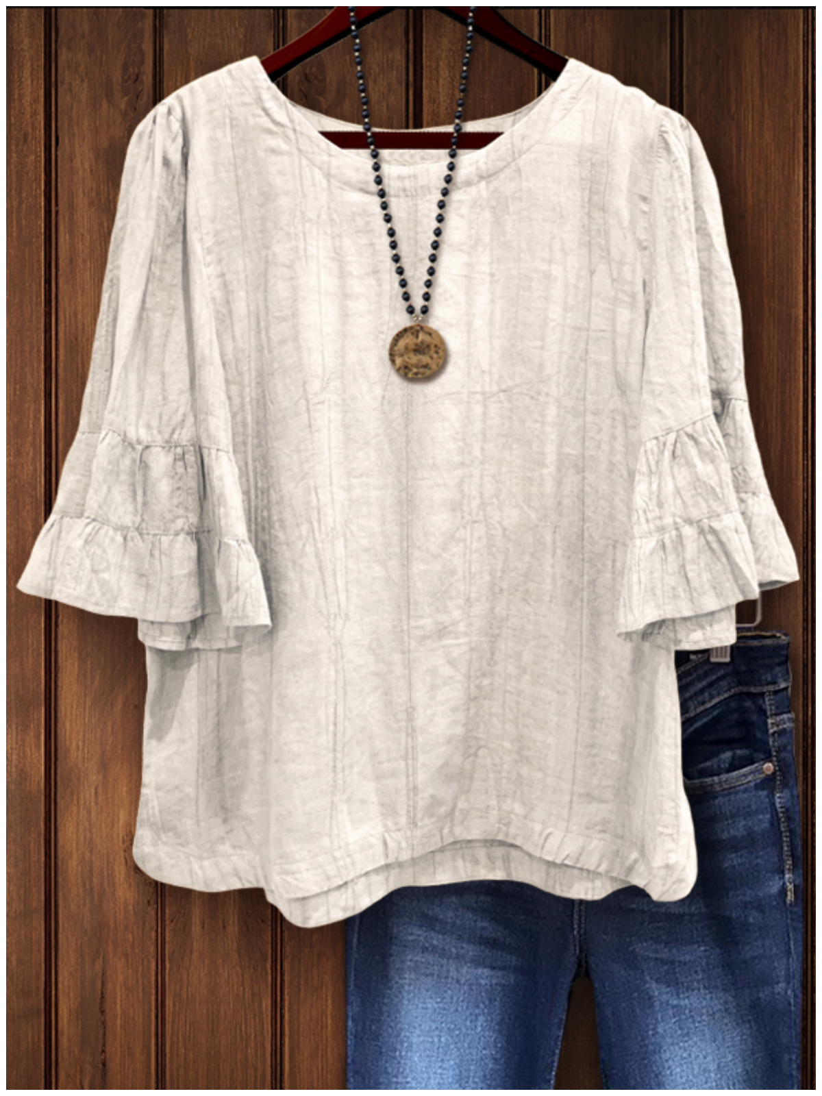 Round Neck Crinkle Linen Top