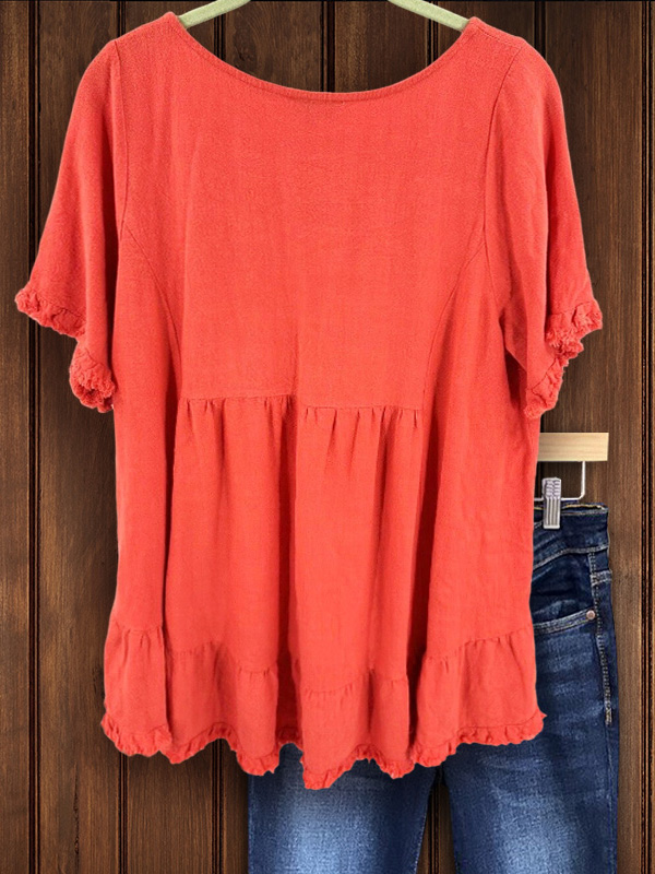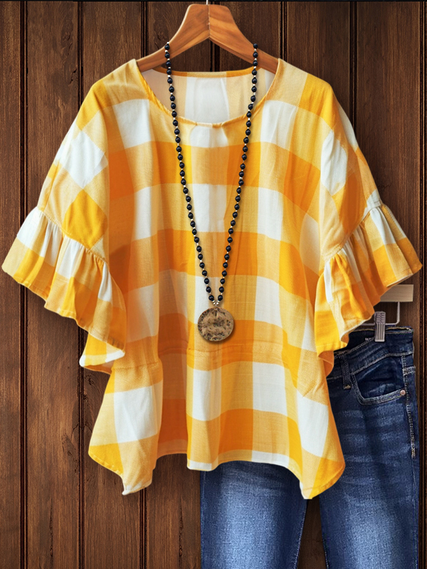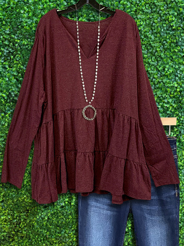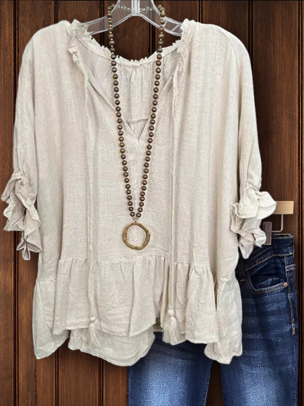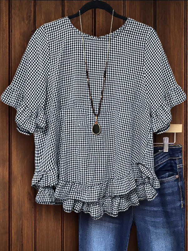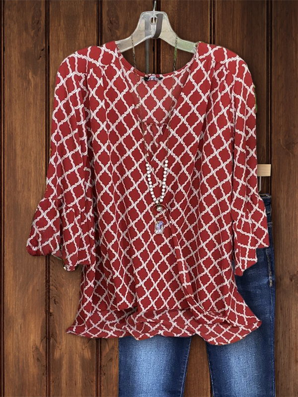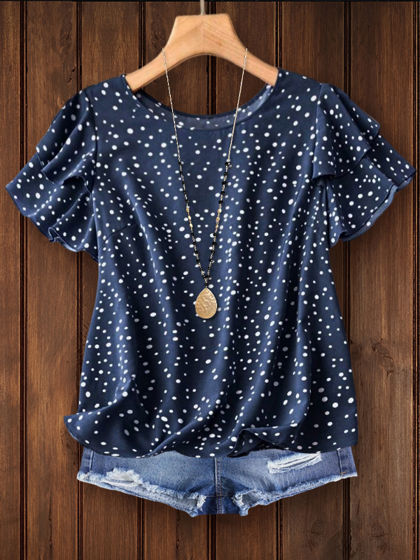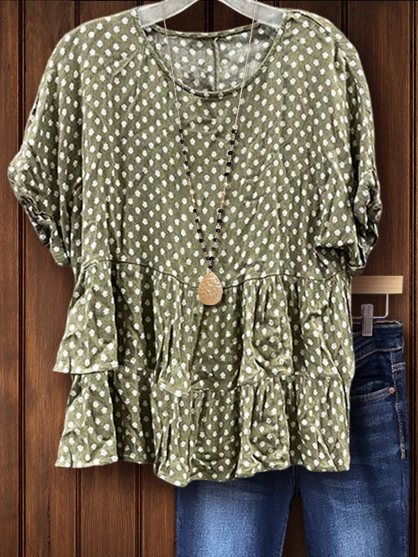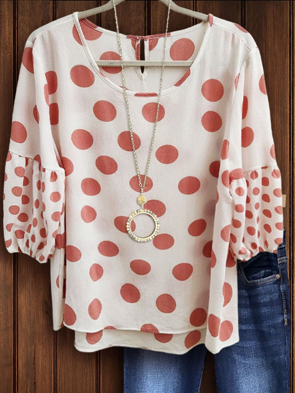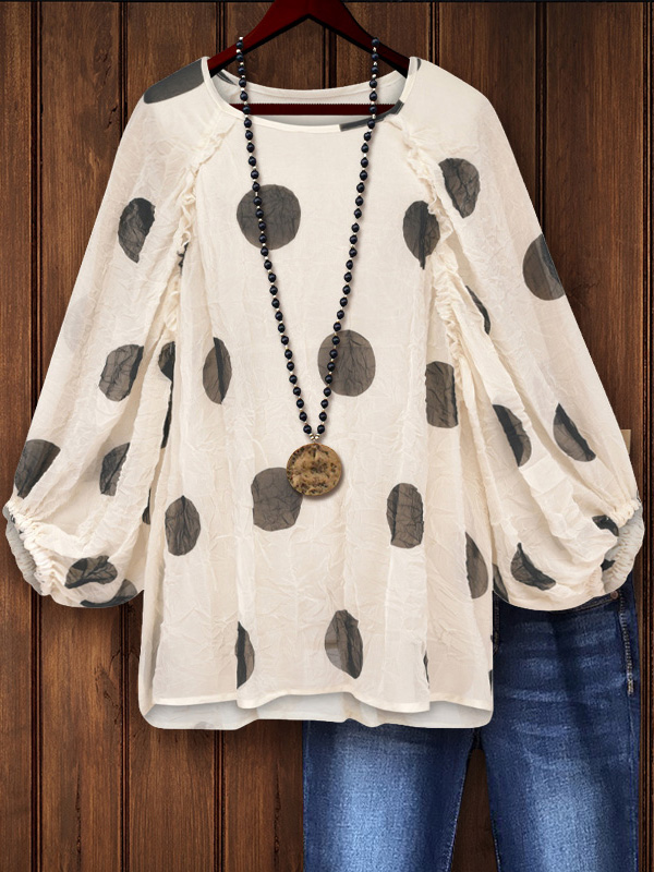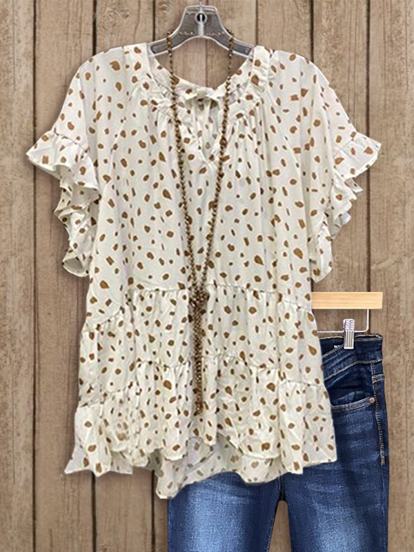 Casual Polka Dot Printed Ruffle Hem Blouse