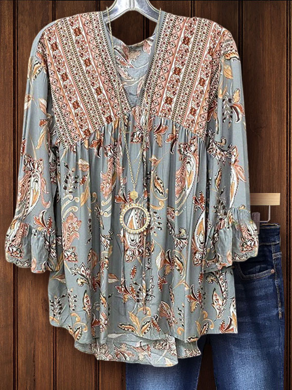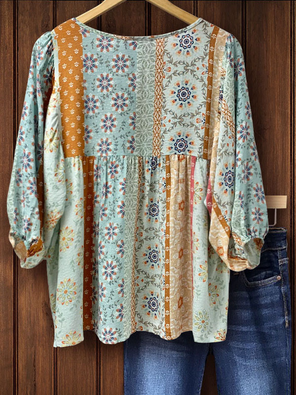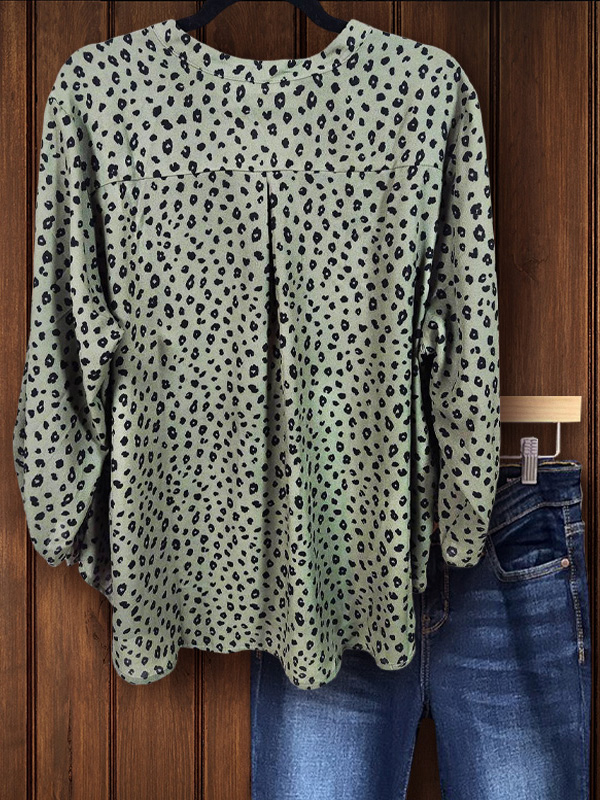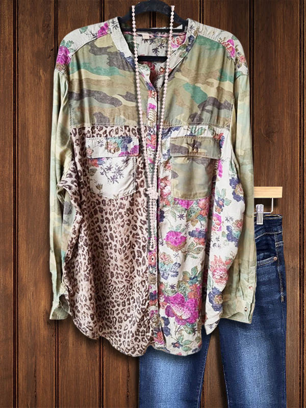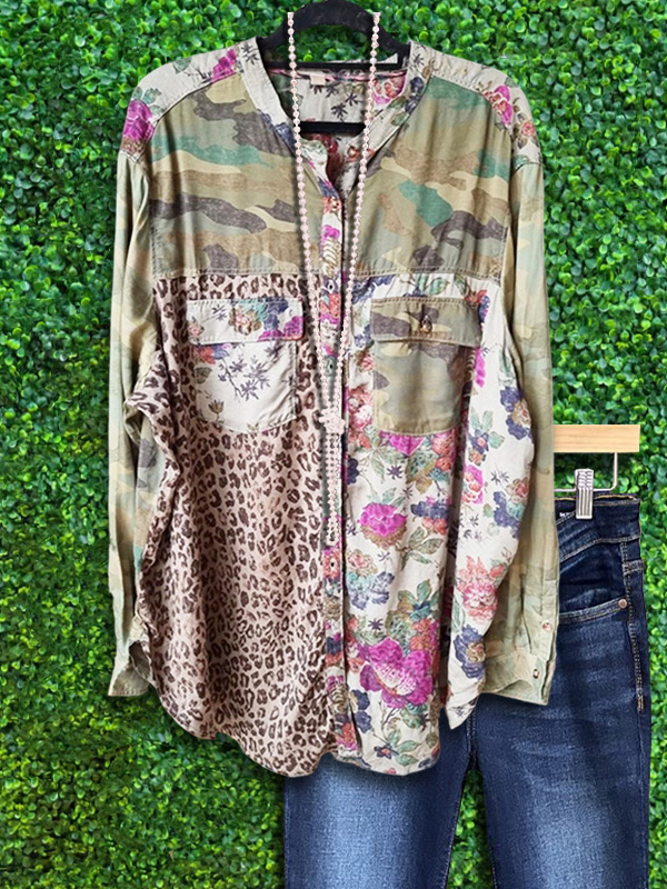 Relaxed Camo Leopard Floral Buttondown Tunic Blouse