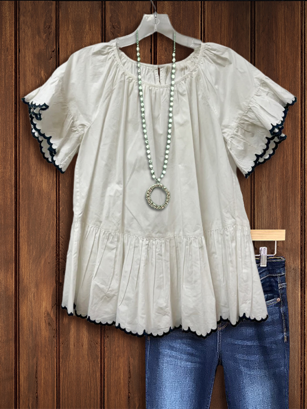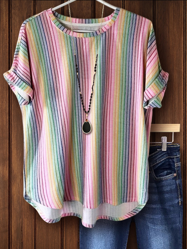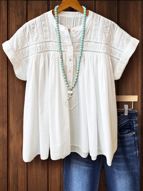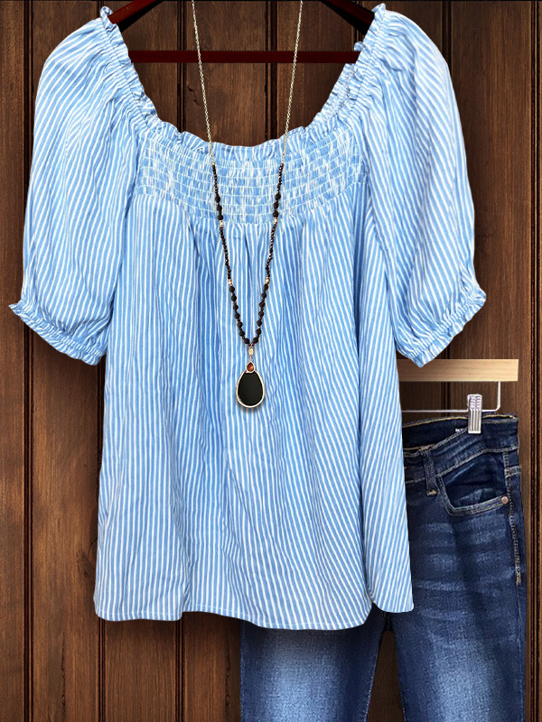 Cotton Vertical Striped Parallel Shirring Detail Top