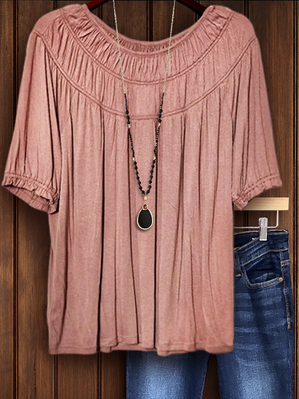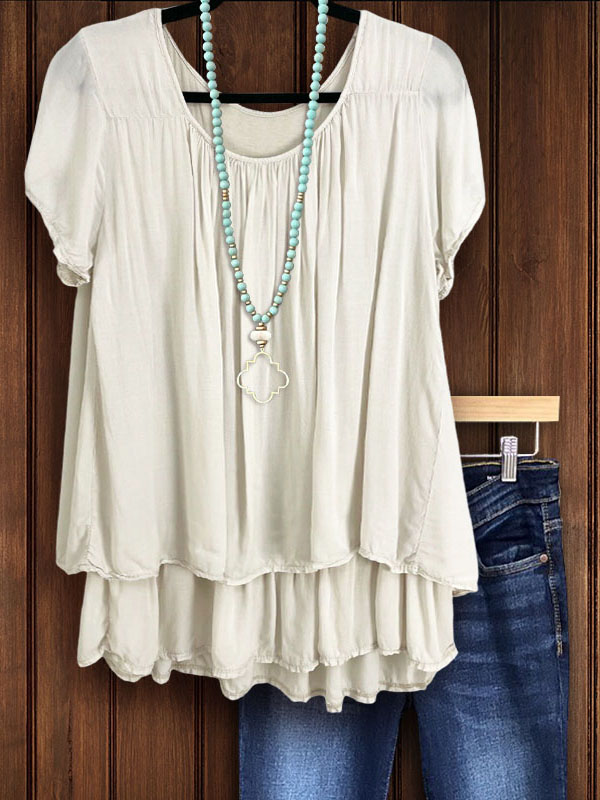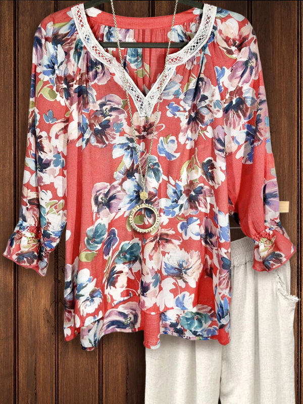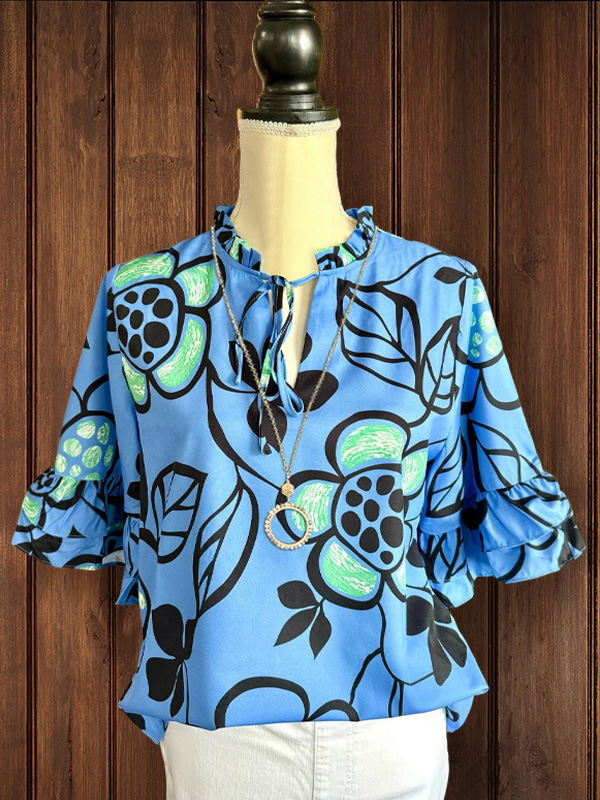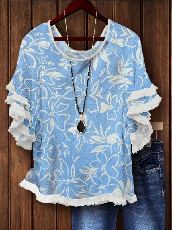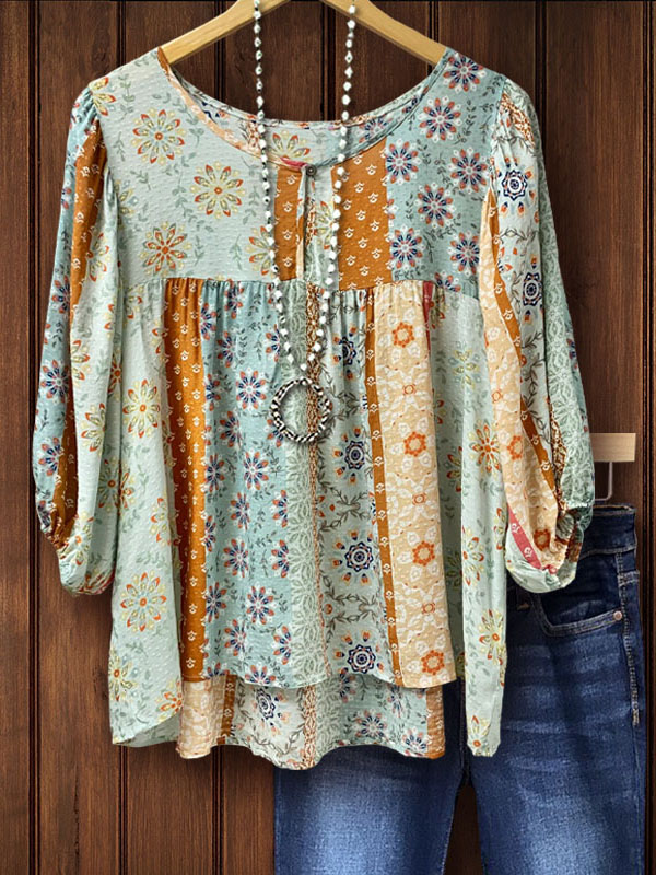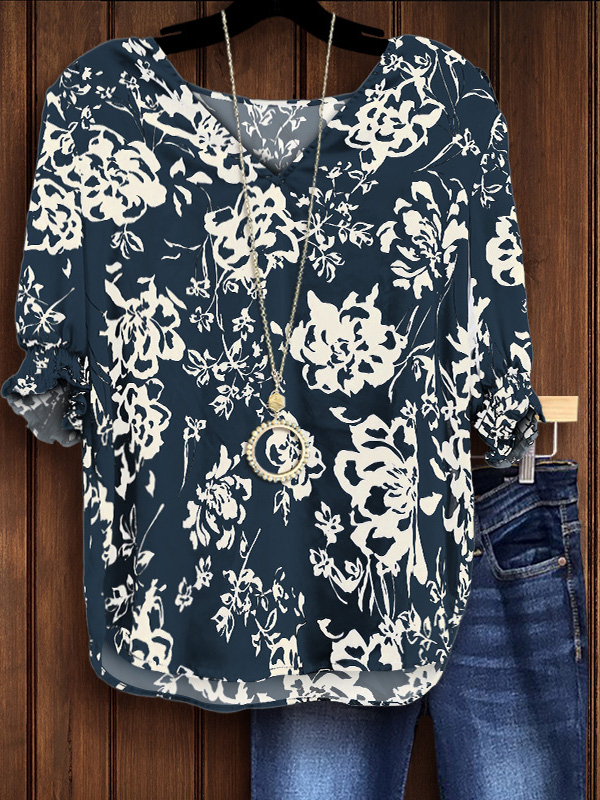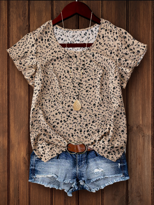 Loose Floral Printed Round Neck Cap Sleeve Blouse