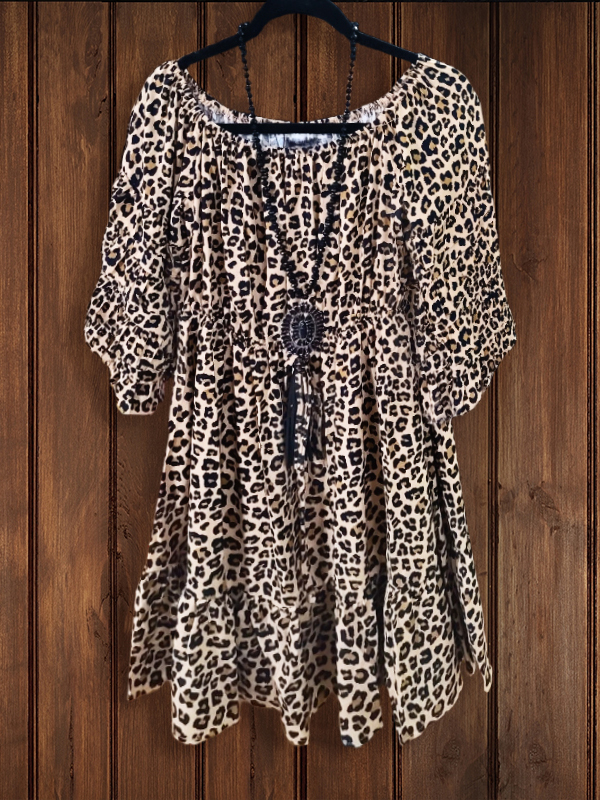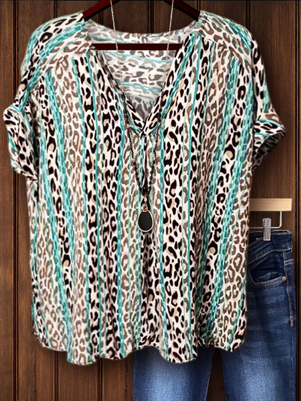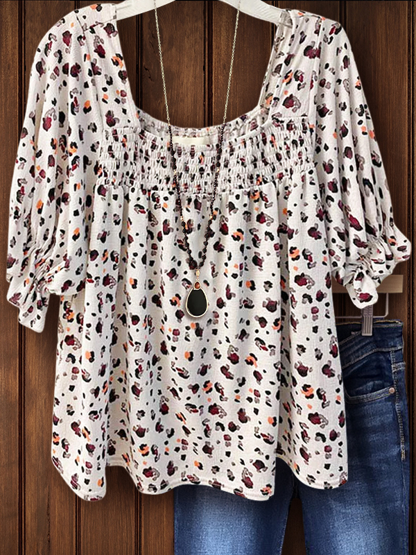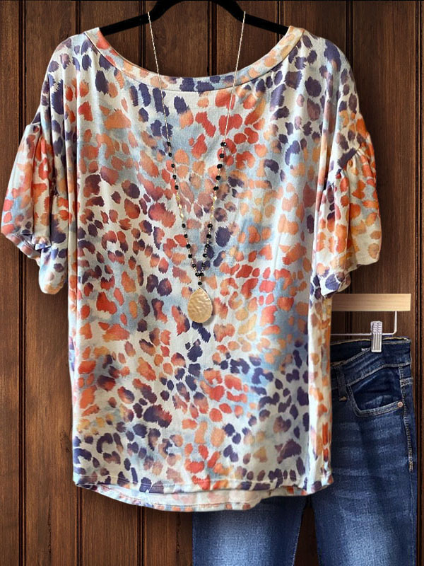Leopard Print Double Ruffle Raglan Sleeve Top
