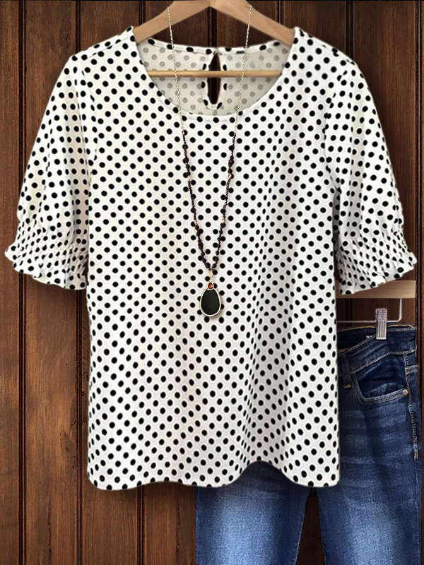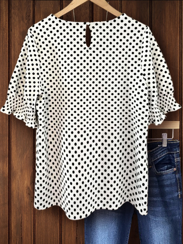 Polka Dot Print Ruffle Sleeve Top